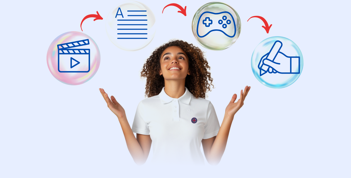 Las 4 fases © son: Introducción a las materias con videos motivantes, luego la entrega de los contenidos teóricos de forma escrita, posteriormente la misma materia se aborda con distintos juegos interactivos y finalmente el cierre de la lección se desarrolla mediante un ejercicio práctico enteramente escrito.